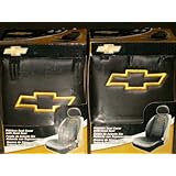 These Chevy Sideless Seat Covers with a Head Rest cover is a set of two for bucket seats with a universal fit and cargo pocket on the back. They are machine washable on cold gentle cycle drip dry only. They have the chevy bowtie and Chevy in gold embroidery.
