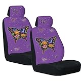 This 2 piece, low back seat cover by Dan Morris is in his popular Butterfly design on a purple background. A sleek, modern fit on most car seats with adjustable or separate headrests, and the microfiber fabric cleans easily, holds up great.