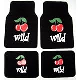 Add a dash of fun and personalize your car with a set of Wild Cherry floor mats. The fabric of the print is made from heavy duty plush thick pile carpet. Embossed logo makes the design stands out. The backing is made from rubber PVC which prevent from sliding and shifting. There is no better way to protect your vehicle's floor / floor mats and increase values while having a bit of fun. Makes a great gift. Dimension front: 17 X 27 Dimension rear : 17 X 13