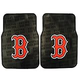 Officially licensed "molded-in" Boston Red Sox MLB team logo floor mats with built-in textured anti skid backing that will never come apart. Mats are universal-fit and sold in pairs. Rubber floor mats are water proof so spill will not soak in and onto your vehicles' flooring. Made with state of art process that bakes in color to prevent fade or discoloration. Cleaning is a breeze with just soap and water. There is no better way to protect your vehicles flooring while showing your team spirit. Dimensions: 25 1/2 X 17 1/2.